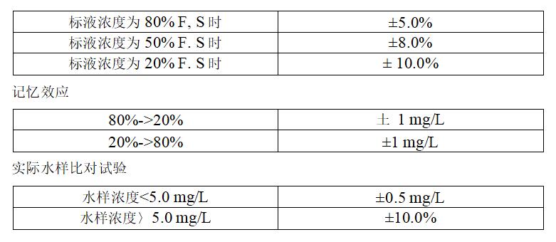 測(cè)定下線:0.5mg/L(示值誤差±30%)零點(diǎn)漂移:±5.0%